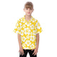 Enhance your child's wardrobe with a stylish hibiscus-patterned Hawaiian shirt, perfect for any island excursion or leisurely stroll through town. This timeless design adds a touch of tropical flair to any outfit, making it a must-have for your next getaway or casual outing. Versatile and comfortable, this shirt is a must-have for any young adventurer.
